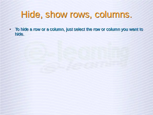 Hide, show rows, columns, worksheets.