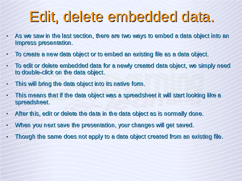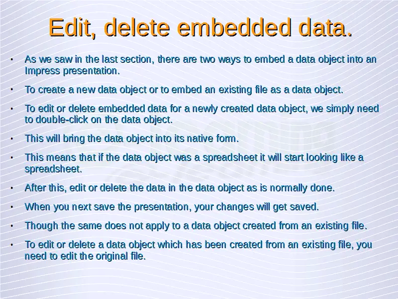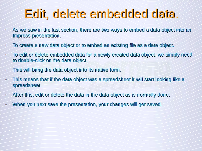 Advanced Presentations – Edit, Delete Embedded Data.