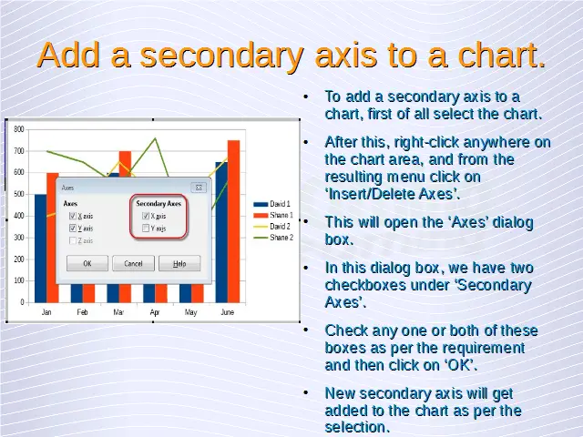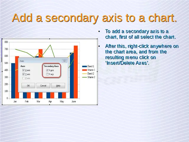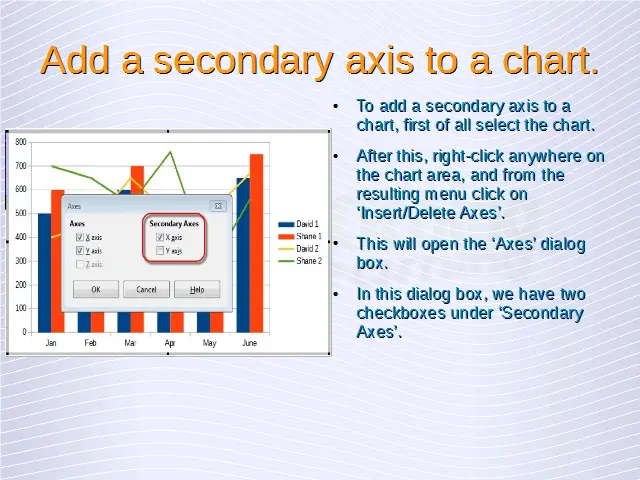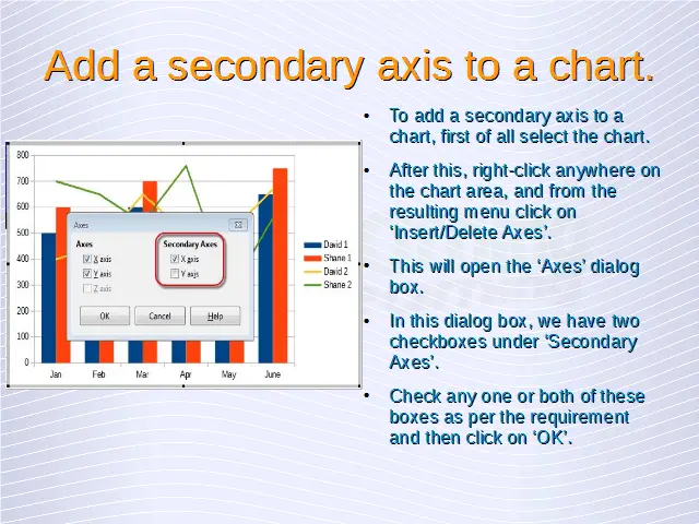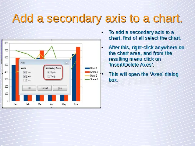 Advanced Spreadsheets – Add a secondary axis to a chart.