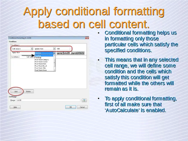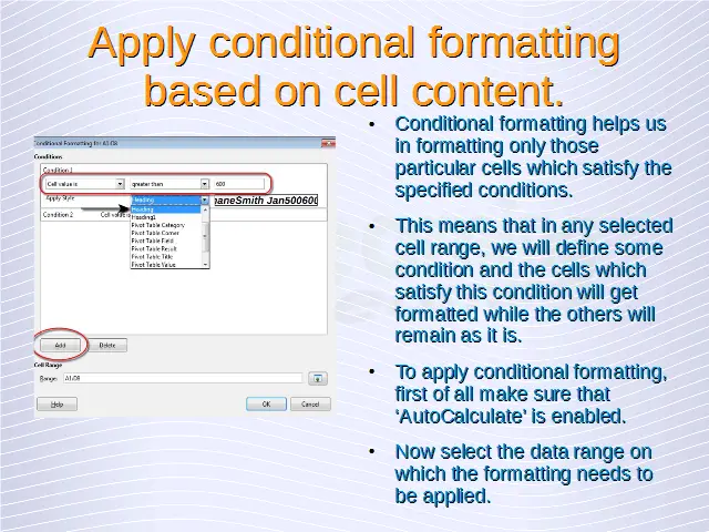Advanced Spreadsheets – Conditional Formatting