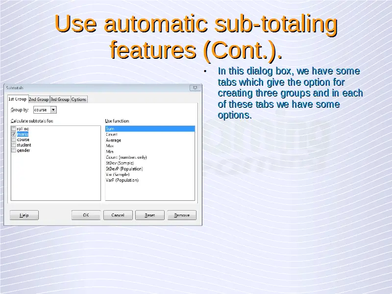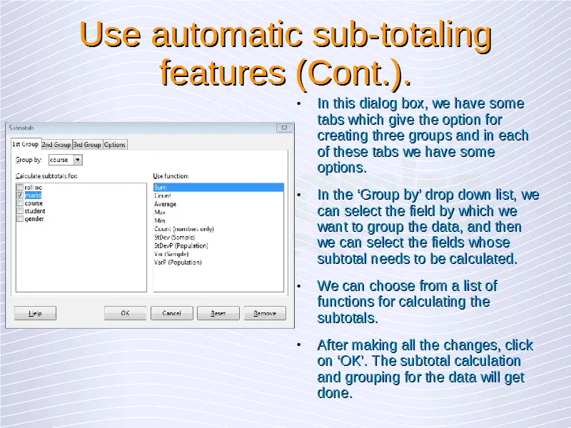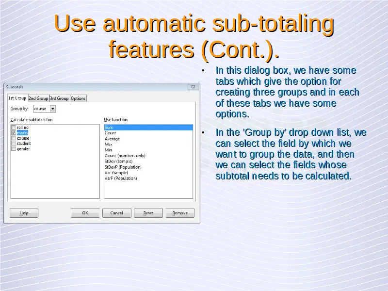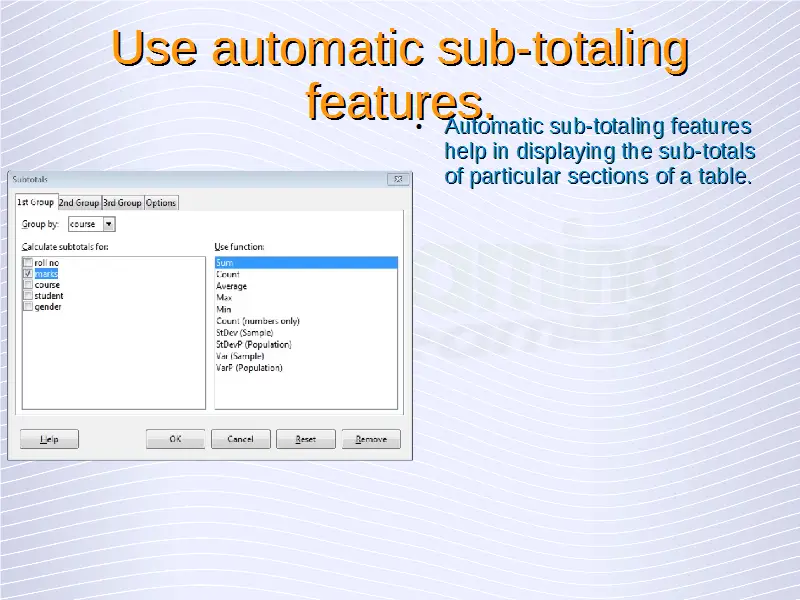 Advanced Spreadsheets – Sub-totaling