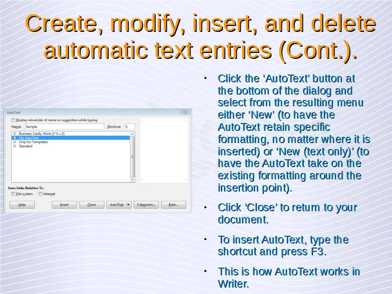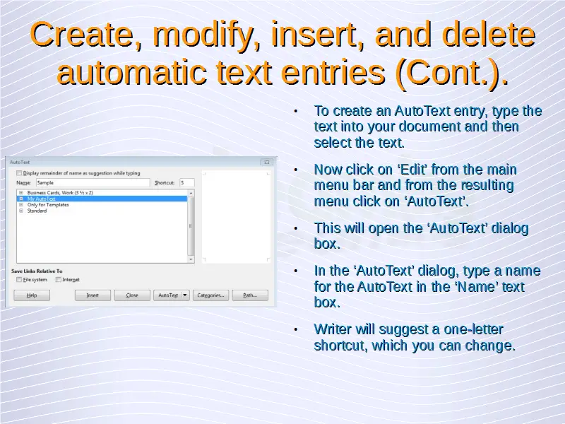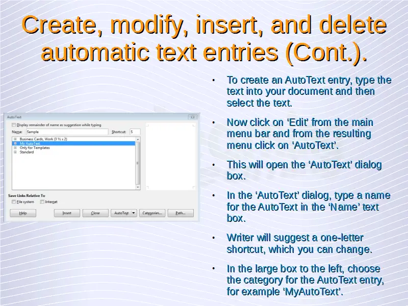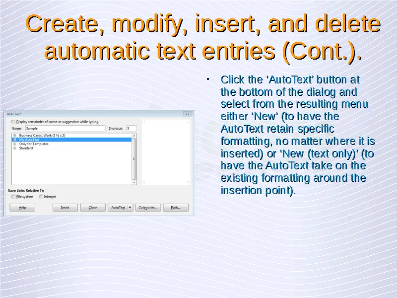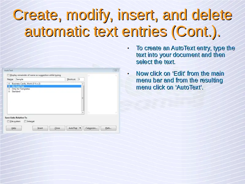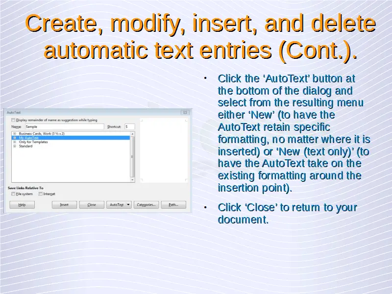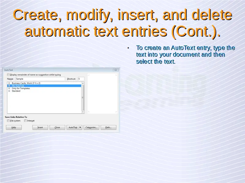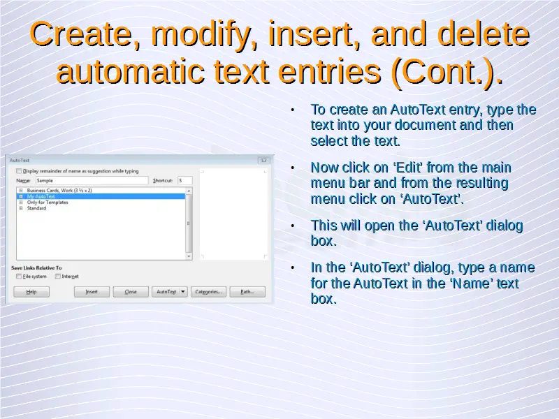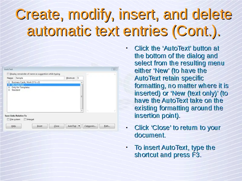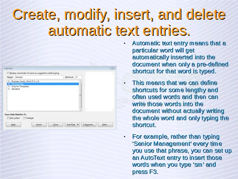 Advanced Word Processing – Automatic Text Entry