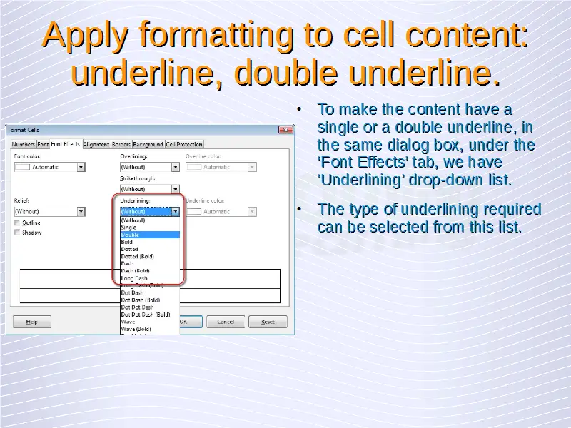 Change Spreadsheet Cell Content Appearance