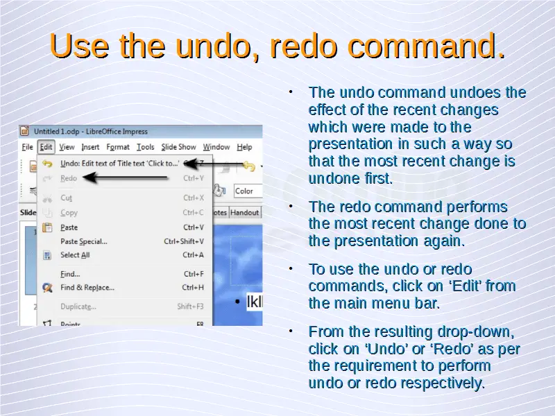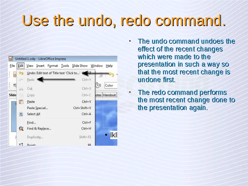 Understanding Presentations – Delete, Undo, Redo Text