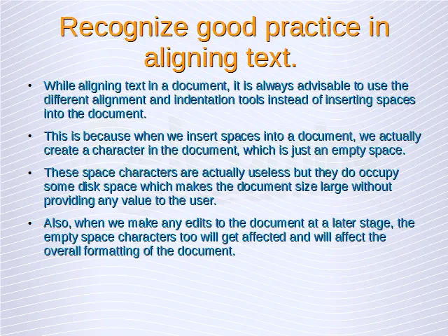 Word Processing – Formatting Text Good Practice